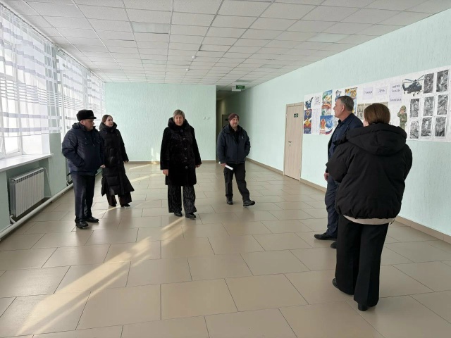 В рамках визита была проведена экскурсия в Гладковскую школу, для ознакомления с результатами ремонта, завершившегося в 2025 году.