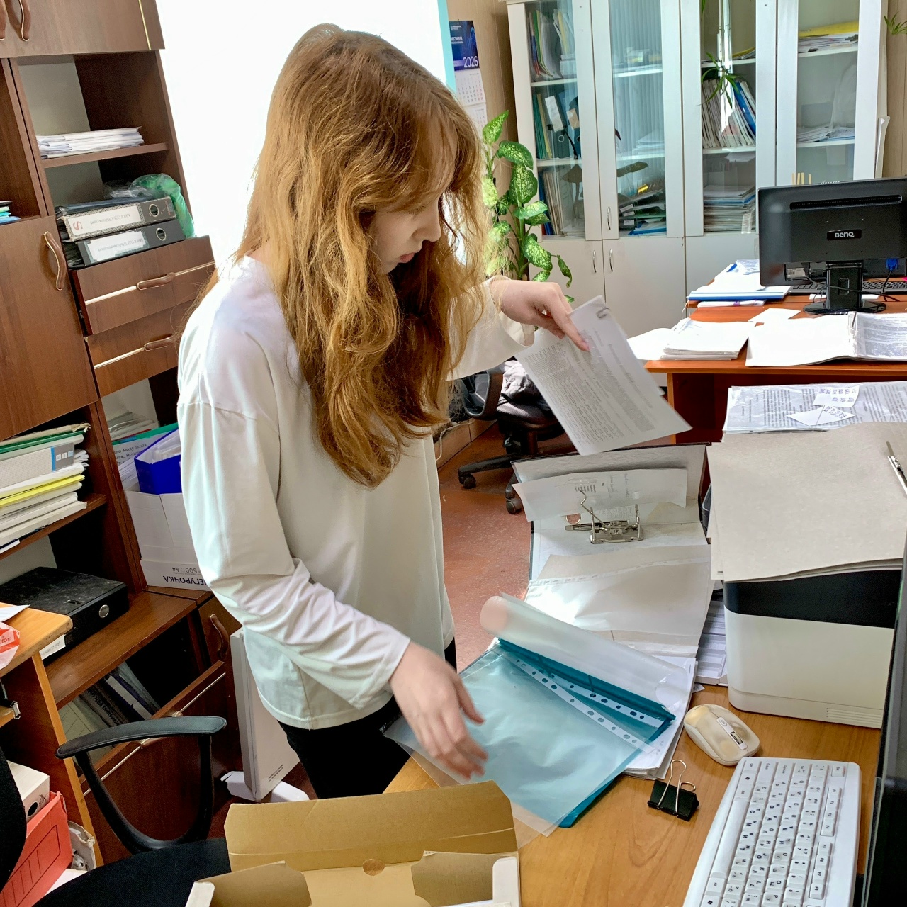 Студенты Курганского государственного колледжа Тимофей и Надежда получают образование по специальности «землеустройство». На время практики они устроены в отдел экономики как стажеры документоведы, оказывают помощь специалистам отдела в вопросах земельных и имущественных отношений. Трудоустройство - официальное, с заключением трудового договора, стажировка оплачиваемая.