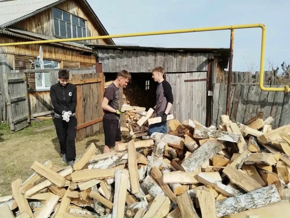 Учащиеся 9 класса Усть-Миасской школы Каргапольского округа оказали помощь маме участника специальной военной операции. Ребята из трудового десанта сложили дрова в поленницу.