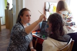 Нанесение рисунков на лицо или Face art – еще одно направление конкурсной программы «ночного музея». Здесь творили перевоплощения студенты художествено-графического отделения Катайского профессионально-педагогического техникума и методист Катайского районного краеведческого музея Алена Поспелова. Из-под их «пера» выходили трогательные весенние птички, цветы,