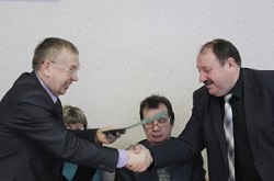На прошедшем аппаратном заседании у Главы района заместитель Главы Шатровского района по экономике – руководитель отдела экономики и управления муниципальным имуществом Администрации Шатровского района Евгений Юрьевич Серков выполнил приятную миссию. От имени Департамента экономического развития, торговли и труда Курганской области он вручил Главе района Леониду Александровичу Рассохину Диплом, которым Шатровский район награждается за лучшую работу в 2014 году по реализации Федеральной программы «Ты – предприниматель» в Курганской области. Подписан документ заместителем Губернатора Курганской области, директором Департамента экономического развития, торговли и труда Курганской области И.Н. Ксенофонтовым и руководителем
