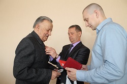 В торжественной обстановке Глава района вручил юбилейные медали «70 лет Победы в Великой Отечественной войне 1941-1945 гг.» труженику тыла Палладию Алексеевичу Таушканову и Лидии Ивановне Потехиной.