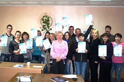 Специалист-эксперт ГУП «Бизнес-инкубатор Курганской области» Ирина Голубицкая рассказала слушателям о видах поддержки бизнеса в Курганской области в 2015 году, а затем вместе с начальником отдела экономического развития и инвестиций Администрации Катайского района Мариной Сажаевой торжественно вручила слушателям Сертификаты о пр
