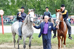 В рамках спортивного праздника был разыгран традиционный Кубок Губернатора Курганской области среди лошадей двухлетнего возраста рысистой породы. Победу одержал гнедой жеребец Байкер из Кургана.