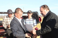 Нынешний, третий по счету результат, – пониже. Но с учетом погодных условий, вегетационного периода растений показатели тоже отличные: валовой намолот – 107656 центнеров, с каждого из 4723 гектаров – 22,8 центнера зерна. Как сказал руководитель трудового коллектива Николай Ефимович Топорищев в беседе с механизаторами на поле, на месте проведения финальной фазы работ, результат мог быть значительно выше, если бы не препятствовала этому зауральская погода. Вместе с руководителем колхоза на поле при