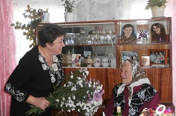 Несмотря на возраст, именинница сама справляется с делами по дому и огородом. Воспитанная в труде, она зря не просидит ни минуты.