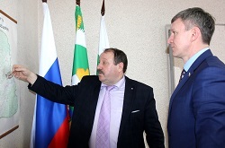Гостей в своем рабочем кабинете принял Глава района Леонид Александрович Рассохин. Он дал краткую характеристику району
