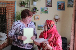 4 мая свое 90-летие отметила жительница села Уксянское Бояркина Александра Семеновна. Со столь знаменательной датой труженицу тыла поздравили первый заместитель Главы Далматовского района Елена Дьячкова, Глава Уксянского сельсовета Юрий Богдашов и председатель Уксянского Совета ветеранов Любовь Николаевна Сергеева.