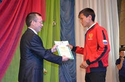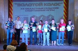 Первым для проведения церемонии награждения был приглашен Глава Катайского района Ю.Г. Малышев. Он награждал победителей состязаний спортивных семей и механизаторов.