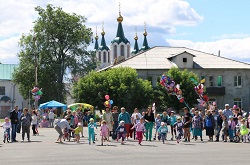 Традиционно для юных жителей города на площади разместились различные аттракционы, взрослые же гуляли среди торговых палаток, где могли приобрести сувениры и изделия декоративно-прикладного искусства.