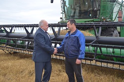Глава района Сергей Николаевич Князев и руководитель управления сельского хозяйства С.Л. Новоселов побывали на полях ООО «Уралхлебопродукт».