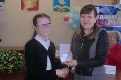 Свои слова поздравления и напутственные речи для ребят произнесли: В.Г. Собакина, заместитель Главы Шадринского района по социальной политике, начальник отдела УФМС России по Курганской области в Шадринском районе – Каткова О.А., председатель Территориальной избирательной комиссии Шадринского района – Калетина О.А., начальник Управления образования – Воложанина Л.И. Также радость получения основного документа разделили присутствующие на мероприятии родители. С напутственным словом от всех родителей выступила Калинина О.С.