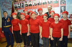После митинга на Аллее Славы отряд юнармейцев во главе с начальником штаба, майором запаса Ильей Бастриковым прибыл в зал Боевой Славы районного музея. В торжественной обстановке на фоне портретов Героев СССР Катайского района в присутствии представителей Администрации Катайского района, педагогов учебных заведений, родителей члены отряда зачитали слова клятвы юнармейца.