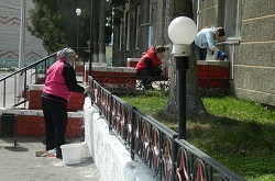 Одними из первых на субботник 28 апреля вышли работники Администрации района. Каждый отдел наводил порядок на своей территории: закрепленные участки были очищены от сухих веток и природного мусора, проводилась работа по вырубке сухих деревьев и кустарников, побелке и покраске фасадов здания, клумб, заборов. Все знают, что под хорошую музыку и работа пойдет веселее. Именно поэтому для участников первого весеннего субботника организовали отличное музыкальное сопровождение.