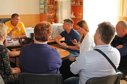 Гости в составе трех директоров московских школ – Северинец Павла Александровича, директора ГБОУ г. Москвы «Школа с углубленным изучением математики, информатики, физики №444», Ниловой Веры Андреевны, директора ГБОУ г. Москвы «Школа №1631 имени Героя Советского Союза В.П. Кислякова, Донского Виктора Александровича, директора ГБОУ г. Москвы «Школа №2031», исполнительного директора Национального проекта «Энциклопедия сельских школ России» Махнева Николая Аркадьевича и сотрудник