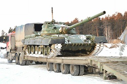26 января из военной части г. Верхняя Пышма Свердловской области привезен танк Т-80. Это основной боевой танк, производившийся в СССР. Боевая масса машины – 49 тонн.
