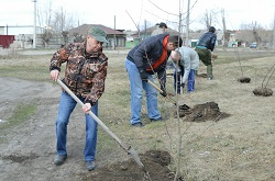 На субботник по посадке деревьев вышла и мужская часть Администрации Катайского района. Руководил работой Глава района Юрий Малышев. В городе Катайске возле дома Юдина, 14 были высажены саженцы яблонь. Материал для посадки предоставлен городским центром по благоустройству.