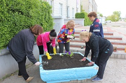 28 мая денек выдался ясным, солнечным, что способствовало отличному настроению. Девушки Администрации района покрасили новые клумбы, высадили цветы. Мужчины к «Дню пограничника» посадили аллею молодых рябинок по улице Федосеева.