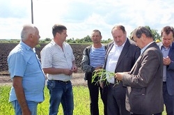 Глава района Леонид Рассохин совместно с заместителем – руководителем отдела сельского хозяйства Михаилом Ядрышниковым, главным специалистом отдела Владимиром Захаровым и руководителями сельхозпредприятий проехали по полям «Мехонской зоны».