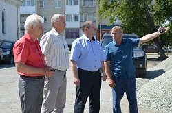 12 июля и.о. Главы Катайского района Глеб Морозов провел выездное совещание в городском парке. В работе совещания приняли участие Глава города Катайска Сабиржан Мусалямов, депутат Курганской областной Думы Андрей Половинкин, начальник отдела капитального строительства и ЖКХ Администрации Катайского района Андрей Булгаков, представитель подрядчика (ИП Мясникова Л.А., г. Далматово) Олег Мясников.