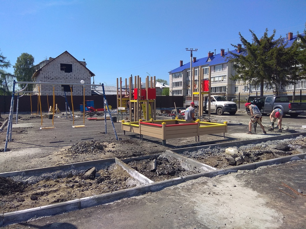 В данный момент проводится установка малых архитектурных форм: качели, песочница, спортивный мини-городок и прочее.