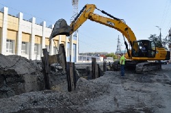 На 2-ом фронте от улицы Савельева в сторону улицы Пролетарской работает техника. «Ведется разработка грунта и демонтаж старого трубопровода. Каждый день прокладываем минимум одну трубу. Сейчас здесь проложено более 24-х метров. Планируем выйти на прокладку двух труб ежедневно&