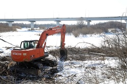 После прохода льда начнутся работы на воде на протяжение 2,4 км в районе моста через федеральную трассу. Предполагается, что работать будет сразу 2 земснаряда с разных сторон.