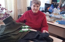 В Альменевском округе активистка клуба "Ветеран" Надежда Басалыгина связала для отправки на фронт 32 пары носков и 18 манишек.