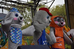 Открылся гастрономический фестиваль эффектным появлением на празднике семейства сырка. В этом году курганских рыбок – символов фестиваля – стало уже трое: вместе с папой и мамой на фестиваль пришёл малёк, который впервые участво