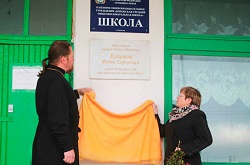 Почетное право открыть доску получили директор образовательного учреждения Наталья Анашкина и отец героя Сергей Климов.
