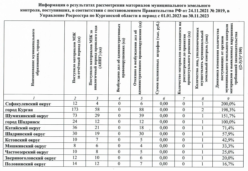 Управление Федеральной службы государственной регистрации, кадастра и картографии по Курганской области рассмотрело материалы органов муниципального земельного контроля муниципальных образований региона о выявленных нарушениях требований законодательства за период с 1 января по 31 октября текущего года.