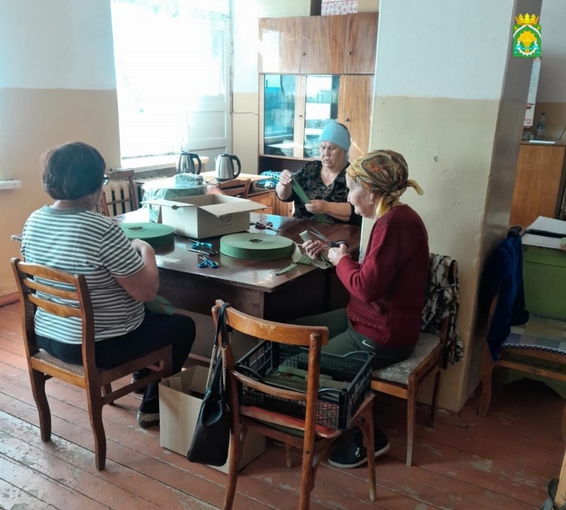 Что ни день, то маскировочная сеть «вылетает» из рук милых тружениц села Ильино Шатровского округа.