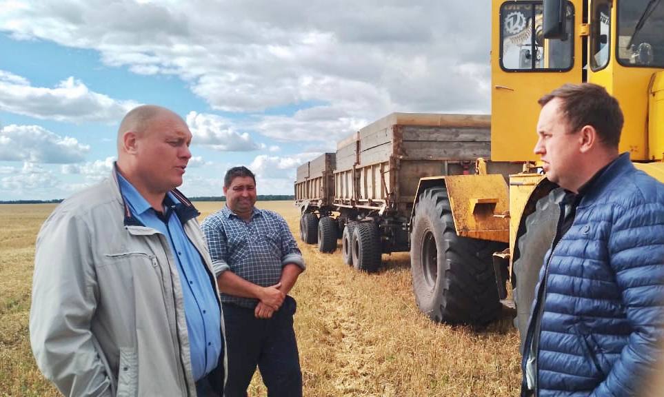 Глава муниципалитета Вадим Меньщиков побывал на полях и в закромах ЗАО «Степное». С генеральным директором Виталием Ивахненко посмотрели, как идет обмолот пшеницы и сортировка зерна на току.