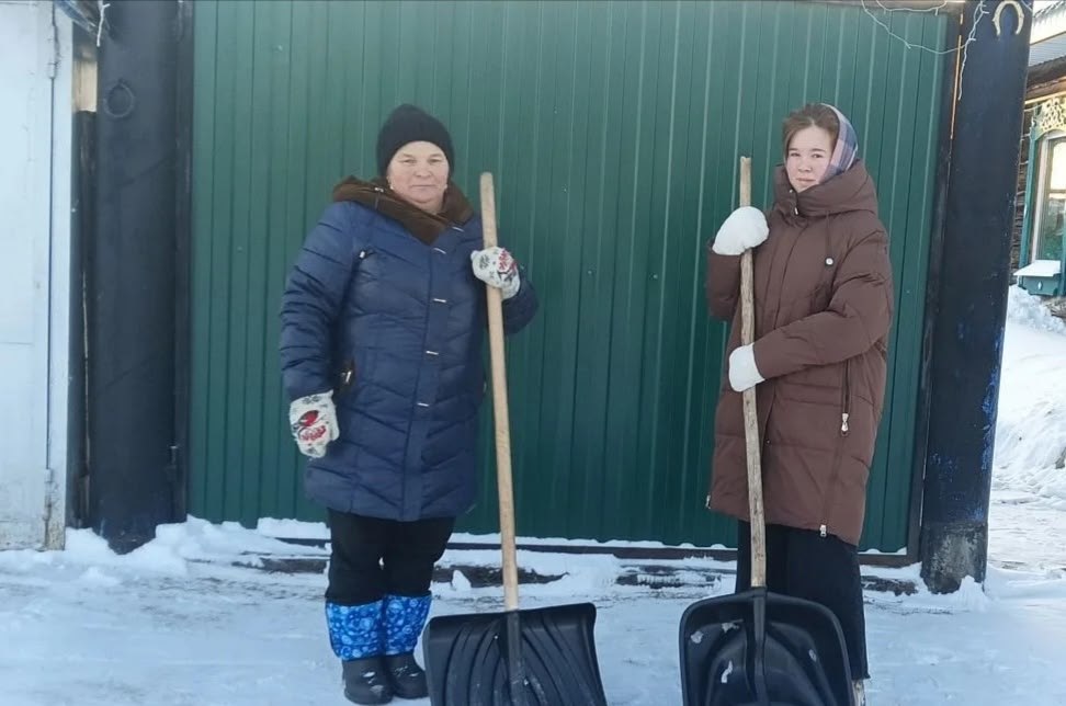 В этот раз волонтеры помогли своей односельчанке Т. А. Антроповой, которая находилась на лечении в стационаре, убрали снег возле ее дома.