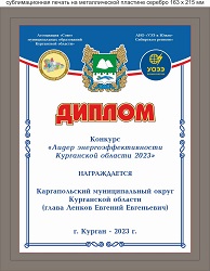 Лидером энергоэффективности Курганской области в 2023 году среди муниципальных округов объявлен Каргапольский муниципальный округ (глава округа Ленков Евгений Евгеньевич). Победителю вручен Диплом.