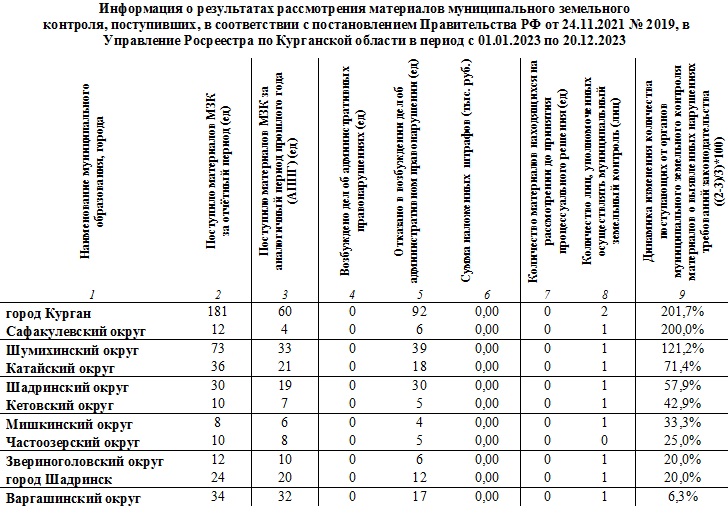Управление Федеральной службы государственной регистрации, кадастра и картографии по Курганской области рассмотрело материалы органов муниципального земельного контроля муниципальных образований региона о выявленных нарушениях требований законодательства за период с 1 января по 20 декабря текущего года.