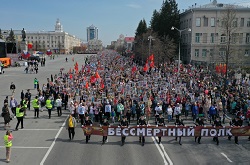 В Кургане «живая река памяти», в которой в одном строю люди разных поколений, профессий, национальностей и вероисповедания пронесли портреты своих предков и героев наших дней, прошла по улице Гоголя до Центрального парка культуры