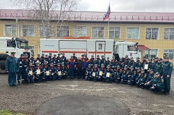 На вручении присутствовали начальник Главного управления МЧС России по Курганской области Землянский Юрий Владимирович и генерал-лейтенант Кутровский Игорь Владимирович директор Департамента спасательных формирований, которые также поблагодарили личный состав спасательного центра и дали напутственные слова.