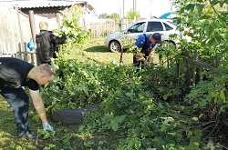 Команда волонтеров, вооружившись топорами, провела расчистку территории от зарослей.
