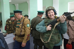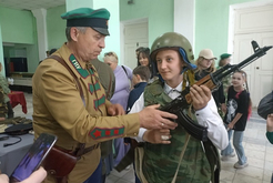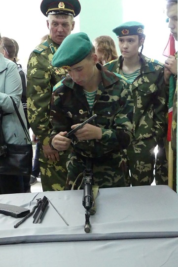 Она вызвала большой интерес у взрослого населения, но более того – у подрастающего поколения. Ребят интересовало все, например, как автомат Калашникова, пистолет-пулемет Шпагина устроены, как заряжаются, сколько весят. Даже девчонки с интересом прошлись по выставке и примерили автомат и ППШ.