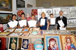 Итоговым мероприятием Фестиваля мастеров УрФО ВОИ стала выставка-конкурс прикладного творчества участников. Здесь были представлены текстильные и вязаные игрушки, украшения и изделия из бисера, декупаж, казанши, украшения из натуральных камней, изделия из дерева и бересты, народные куклы, картины, выполненные в различных техниках, и многое другое. По итогам конкурса представители Далматовского района были отмечены ценными подарками и Дипломами участников – Татьяна Анатольевна Пленерт и Наталья Александровна Зырянова, Дипломами I степени – Валентина Васильевна Строева и Мария Семеновна Ветлугина.