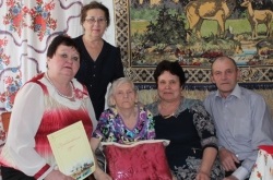 Встреча прошла в очень теплой обстановке. Во время беседы за чашкой чая присутствующие родственники рассказали гостям о трудовой деятельности Анны Ивановны. С 14 лет она работала швеей в промартели «Интруд», техничкой – в школе глухонемых Далматовского района, с 1961 года до пенсии – на заводе «Старт» в цехе молочной посуды смазчицей. Воспитали с мужем четырех замечательных сыновей. В настоящее время проживает одна, но сын со снохой постоянно заботятся о маме.