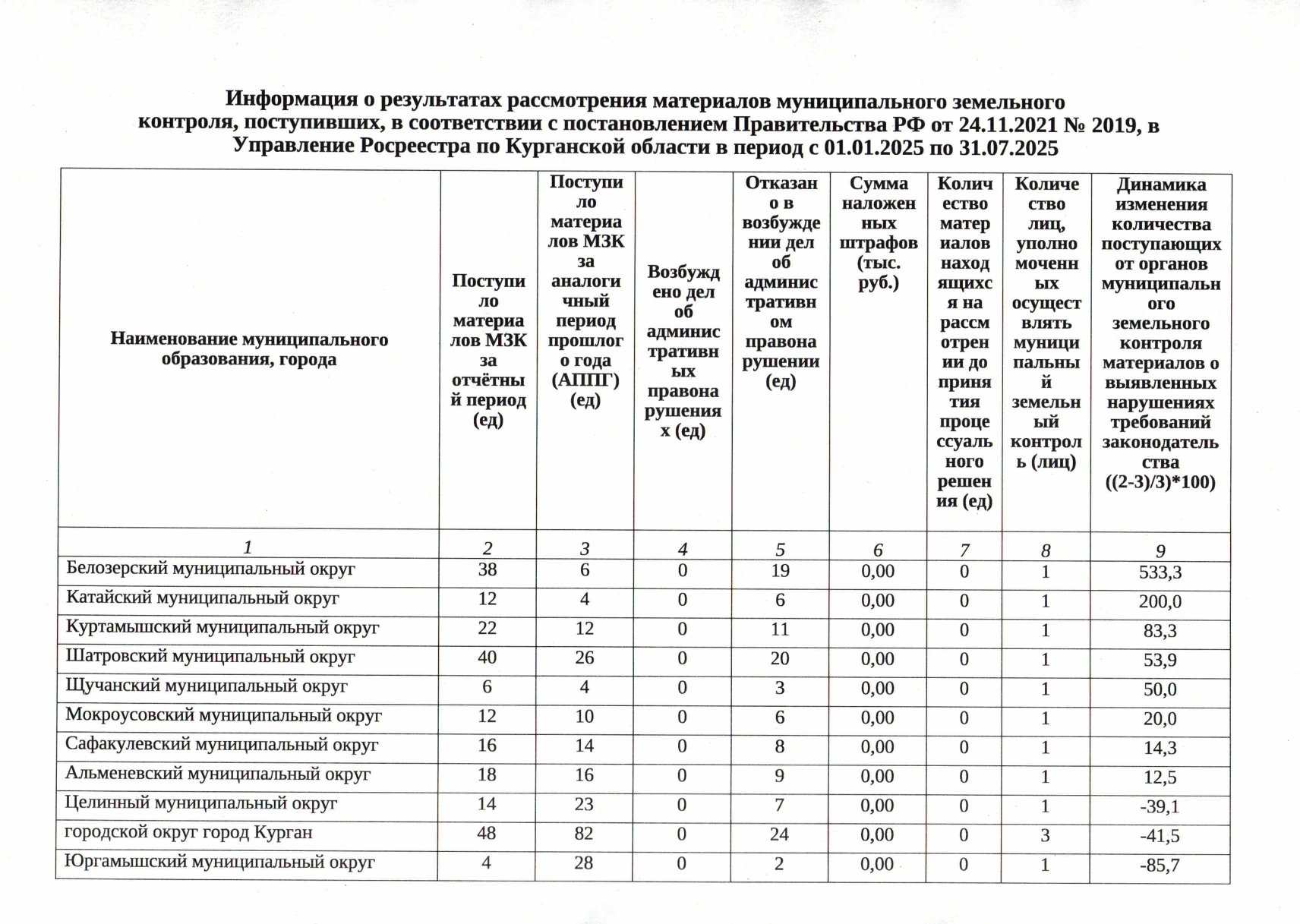 Муниципальный земельный контроль – одна из важных составляющих пополнения бюджета муниципалитетов. Однако на практике данный вид контроля используется пока недостаточно активно. В связи с этим Управление Федеральной службы государственной регистрации, кадастра и картографии по Курганской области доводит до сведения глав муниципальных образований информацию о проведенных проверках муниципального земельного контроля и принятых по итогам рассмотрения материалов мерах за период с 1 января 2025 г. по 31 июля 2025 г.