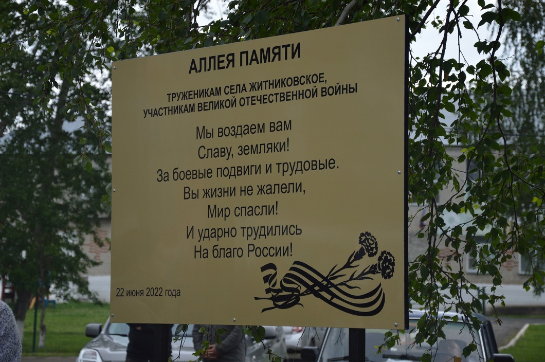 22 июня в с. Житниковском состоялось открытие Аллеи Памяти труженикам села Житниковское, участникам Великой Отечественной войны.