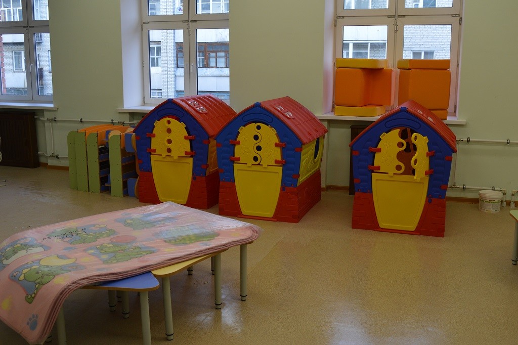 Сейчас в садике завершается установка мебели, подходят к концу работы по благоустройству территории, проводится маркировка мебели и технологического оборудования. Осталось расставить игрушки, интерактивное оборудование, повесить шторы и, конечно, встретить новоселов.