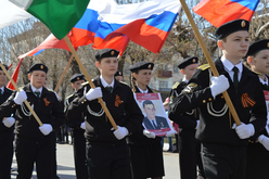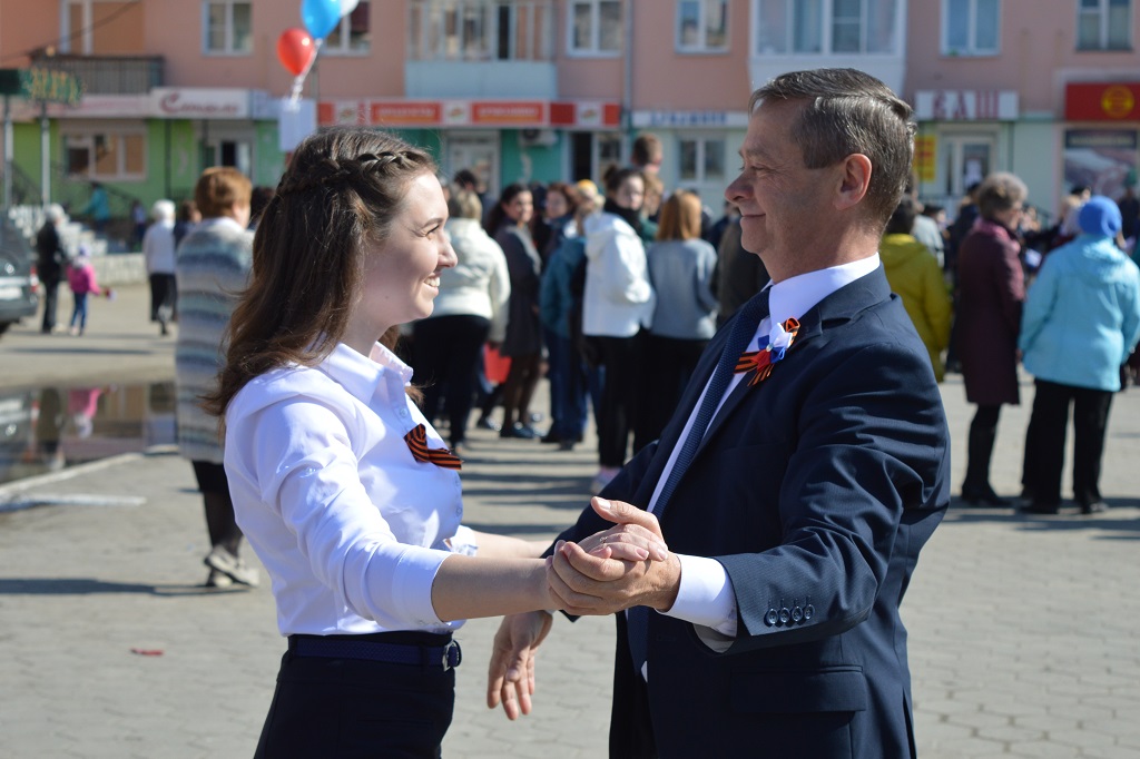Кажется, что на центральной площади Катайска собрался весь город. Да и погода благоприятствует – ярко светит солнце, радуют глаз набухающие на деревьях почки. Кружатся в танце пары – это кадеты КСШ №2, к которым примкнули все желающие, исполняют вальс Победы. Строится колонна, которой традиционно командует полковник запаса Михаил Устюжанин.