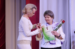 Медаль «За патриотизм» председатель Катайского районного Совета ветеранов Павел Таушканов вручил руководителю по работе с поселениями Отдела культуры Администрации Катайского района Людмиле Тимченко, памятный знак «За особые заслуги» - заведующей Петропавловским СДК Ирине Франчук и директору Центра Русской культуры «Берегиня» Наталье Теляковой.
