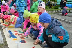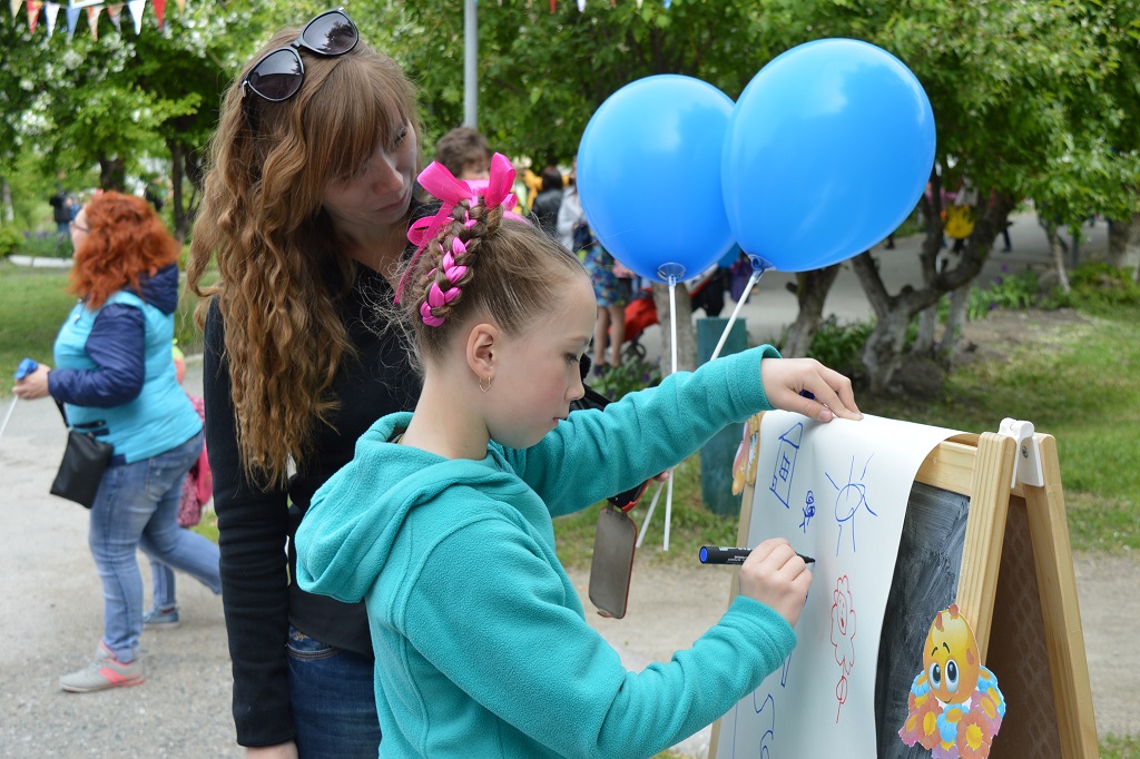 После концерта праздник продолжился на нескольких площадках. Ребята приняли участие в подвижных играх, конкурсе рисунков на асфальте, все желающие посетили салон боди-арта.