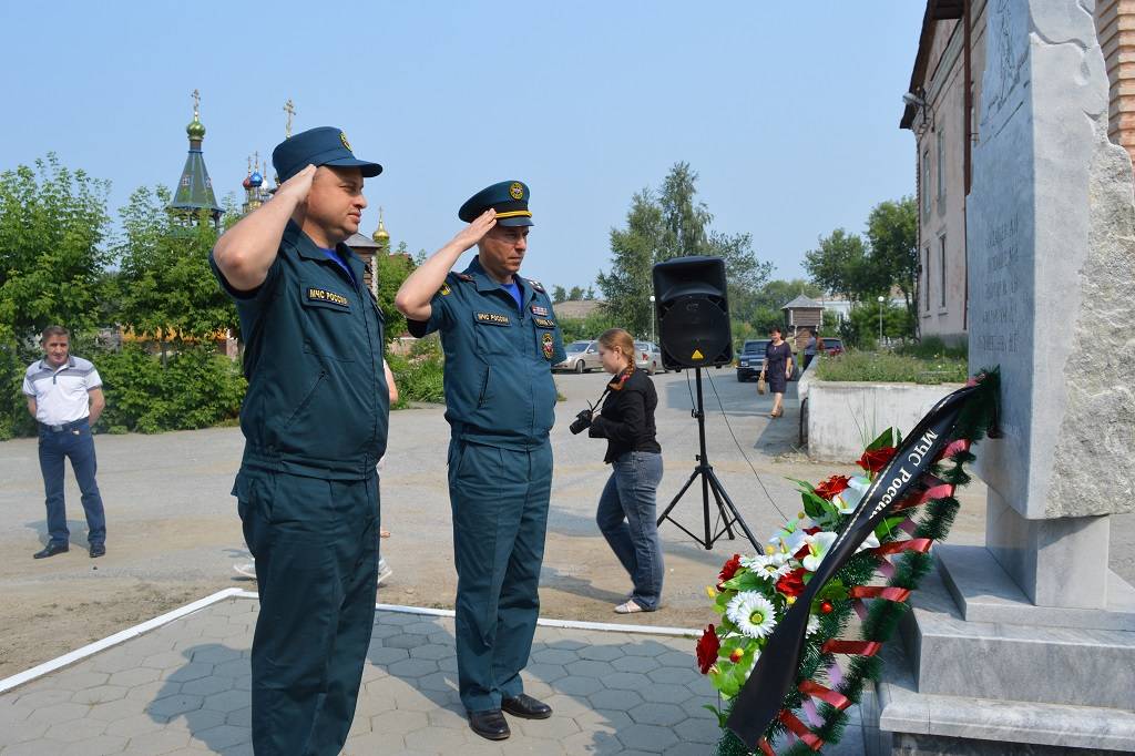 Право открытия монумента памяти пожарных, погибших при исполнении служебного долга, было предоставлено О.А. Рожкову, А.В. Рассказову, Ю.Г. Малышеву и В.В. Черных. Обряд освещения монумента провел духовный настоятель отец Евфимий Козловцев.