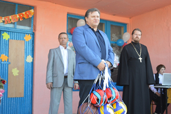 Депутат Курганской областной Думы, секретарь местного отделения партии «Единая Россия» Андрей Половинкин поздравил детей, педагогов и родителей с памятными событиями и преподнес подарок – мячи для нового спортзала, пожелав сельским ребятишкам покорять новые спортивные вершины.